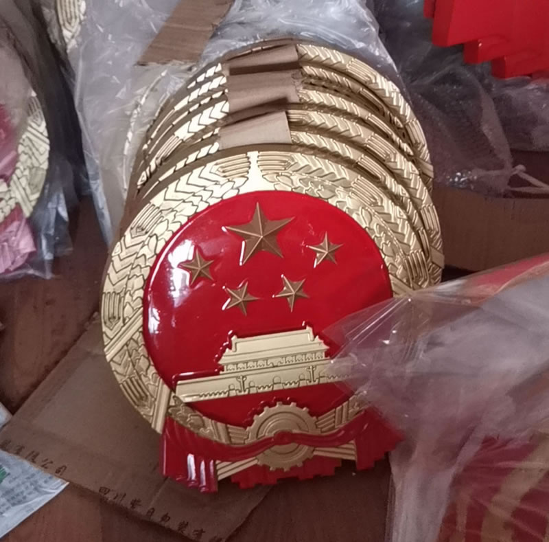 | 安装方式 | 安徽小国徽现货-小徽章背面都配有穿挂耳孔,钉子钉在墙上,再用穿铁丝钢丝,适合安装在办公室/会议室会场等。大徽后面为膨胀螺丝孔,安装需要定做铁架,铁架固定墙面上后,再将徽章固定在铁架上。玻璃幕墙也是需要铁架方式安装。 |